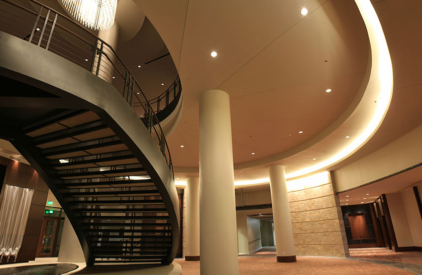 The design challenge was to capture the essence of Nashville and its love of music in a seamless integration of the existing portion of the Country Music Hall of Fame with the newer, modern expansion and hotel. The lighting plays a major role in that it accentuates the rhythm of the interiors by highlighting the subtle musical features throughout the project and by providing the fluidity and motion desired in respective locations when featured as the main sculptural element itself.
