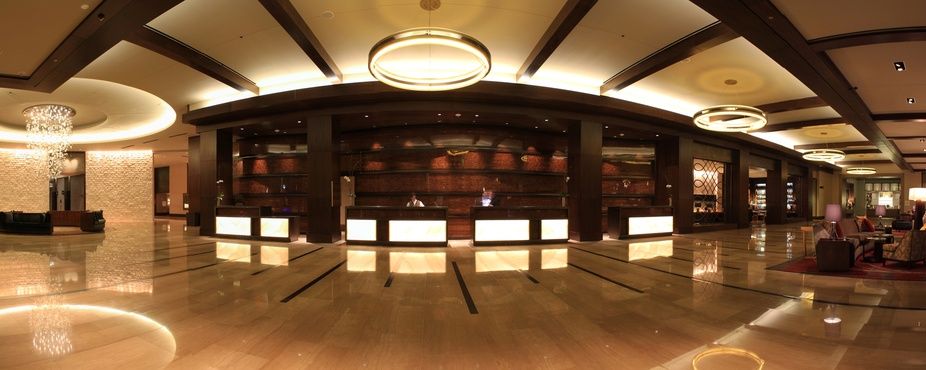 There are also several meeting rooms, two large ballrooms and a coffeshop. Throughout the whole project, lines and curves of light accentuate the architecture. This continues outdoors as well. The podium of the hotel is marked by highlighted vertical architural elements. At the top of the building, these elements are recalled by lines of light whose color can be changed for various holidays and sporting events.