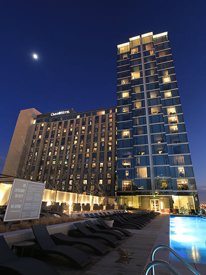 As a whole the hotel has a warm and welcoming atmosphere. The additional musical lighting elements include memorabilia display cases that subtlety recall music notes along the wall. In other areas, Musical artwork is highlighted, and patterns of light and dark recall piano keys. In addition to the spaces described above, the hotel also features a full spa with gentle light grazing textured surfaces, a quietly lit pool deck complete with a pool bar, fire pit and trees with twinkle lights in them.