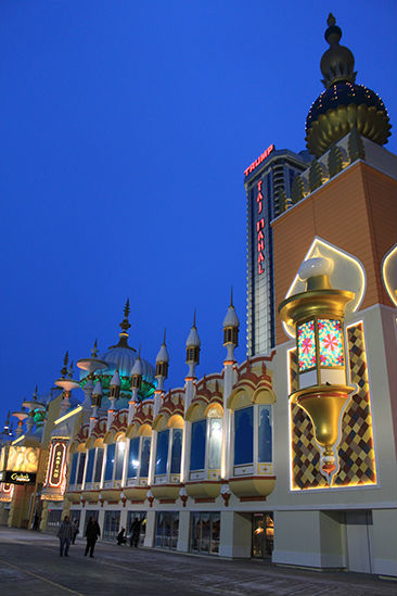 GWA was approached to help with the renovation of the Trump Taj Mahal boardwalk facade in Atlantic City, NJ. The original sparse floodlighting scheme (from 1990) was in disrepair and the approach flattened the intricate themed elements. The budget was limited and needed to be applied across the entire 3-block long façade. In addition the environment was difficult given the salt air and potential for vandal abuse at ground level. A durable, efficient, cohesive look was important to the design team to reinforce the property identity across the long facade.